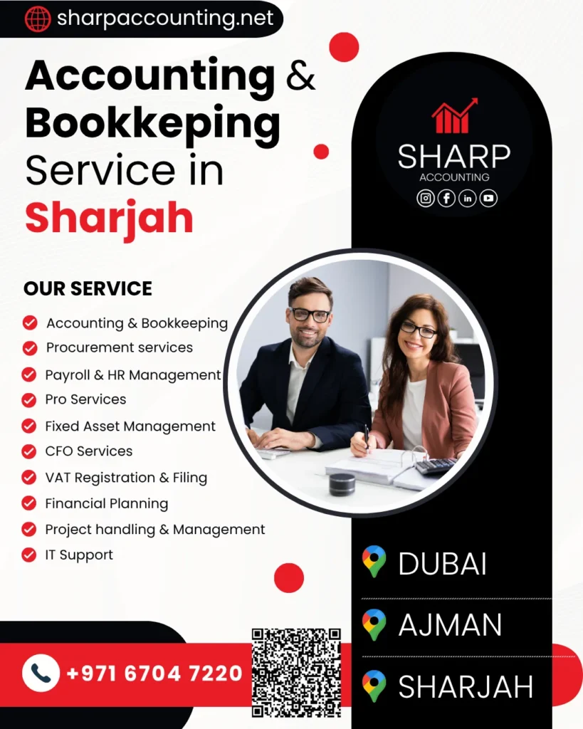 General ledger, payroll, VAT support, bank reconciliation Sharjah, AP/AR management Sharjah, management accounts Sharjah and year-end financial statements Sharjah tailored for SMEs.
